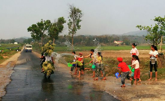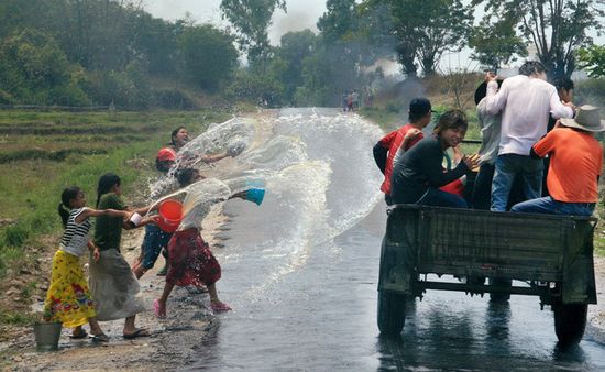 貌鲁埃长大成人后,担任政府部门主管,有了妻室儿女,被派到其他城镇任职,已不能像年轻时那般放荡不羁,随心所欲。但是,每到过年泼水节,回忆年轻时的情景,却是一件甜蜜的享受。现在他们只能在家里做重蒸糯米饭,油饭,细米粥招待钦丹敏、钦钦蒂、钦钦瑞、钦钦莱、玛钦丹、玛苏莺、哥柳、哥温,然后向他们泼水。这也轰轰烈烈,嘻嘻哈哈,高高兴兴。整家都湿了,被褥、皮箱、桌椅无一幸免,全都淋漓尽致,少年时期养成的那种癖好,怎样也无法屏弃。
