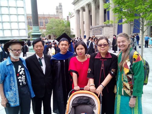 杨怡传贤伉俪为促进缅甸的工业发展,组织了缅甸塑料工会,并担任了会长,他还担任了缅甸工商会理事,以及缅华业余剧社、杨氏家族会、南中校友会……的要职。这次来参加小儿子振伟的毕业典礼的还有女儿及外孙,一家五口人团聚在一起来到洛杉矶。五月三日,南加州南友联谊会四十多位校友们在庆相逢酒家宴请他们的到来。大家开怀畅谈,彼此分享,渡过一个很温馨的夜晚。