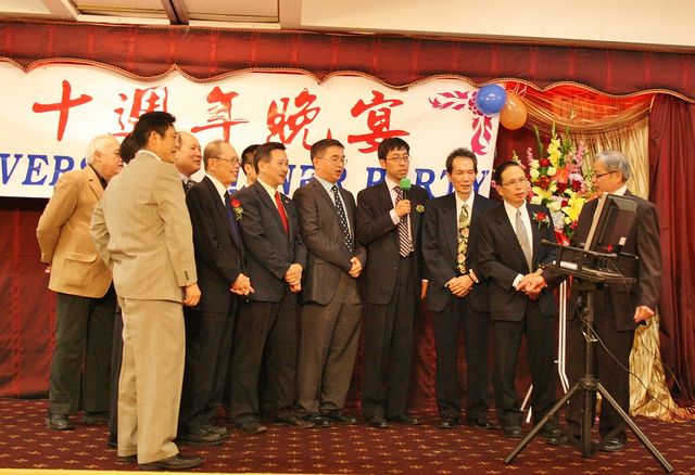 杨群芳会长在他的开幕祝词中说:“我们客家会成立于2002 年,创会会长是蔡玉赞先生,副会长李文泉先生,理事张少战先生。” 杨会长满腔热情地说:“ 你们劳苦功高,我们衷心地感谢你们!” “南加缅甸旅美客家协会的组织目的是鼓励文化交流,互相交往。” “这个晚宴是一个管道,给大家一个机会见见老朋友,交交新朋友。” 他还说:“ 我们客家会人才众多, 财政稳定,又有合作精神,那怕不成功?” 他自信,自豪地道出了一个族群组合之所以能够十年如一日地向前迈进的主要因素。对到来参加庆宴的贵宾、社团代表、会员及家属特别是远道而来的北加卅社团和祖籍国洛杉矶总领馆领事王鹏、余雄两位先生的莅临支持表示感激。接着该会第一届会长蔡玉赞先生致词。根据世界日报6日通讯报导,王鹏领事当晚讲话时提及 “邱绍芳总领事是广东惠州客家人,对客家文化非常重视,愿为客家文化发扬光大奉献心力”。
