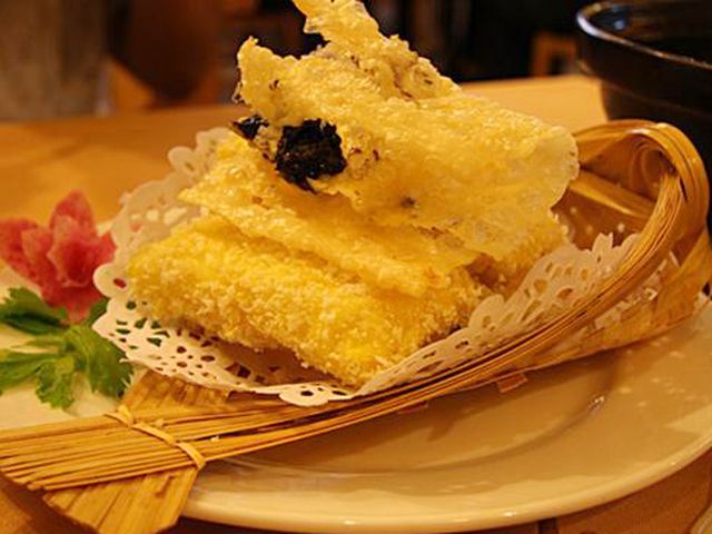 烤粕是掸族人用糯米蒸成饭,有黑糯米,白糯米和粉红糯米等。用脚踩踏架子上的大木锤,在石臼中一下一下把糯米饭舂烂,直至成为均匀软糯块状的糯米糕,撒点盐、苏子、芝麻等作料,买回后切片用油酥炸,沾白糖吃,软糯香酥。也可做成约五、六寸圆圆扁扁的薄片状,内夹黄糖芝麻馅料,用炭火烤来吃。有些不放馅料的,烤时自己放喜欢的馅料也可以。妈妈买了几块圆薄片型的,晚上烤来吃。竹筒饭是掸族人用糯米拌了花生、豆类、椰丝等馅料,放入竹筒中大约七分满,把竹筒口塞紧,用炭火烤。等糯米饭熟了飘出香味,就用刀把竹筒烤焦的外层削去,留下最里一层白白的竹内膜。吃时只要把竹内膜剥开,就可吃到香喷喷的竹筒饭。通常做竹筒饭的竹筒较粗大,较细小的竹筒则用来做竹筒糕,用糯米粉拌黄糖以同样方法做成,甜甜糯糯的有竹子的清香,是另一种风味。
