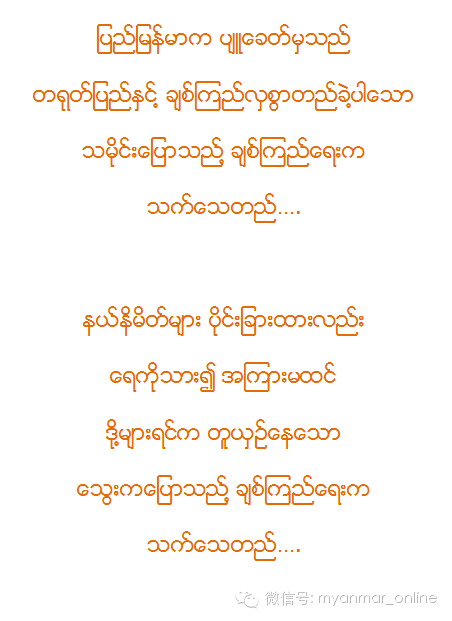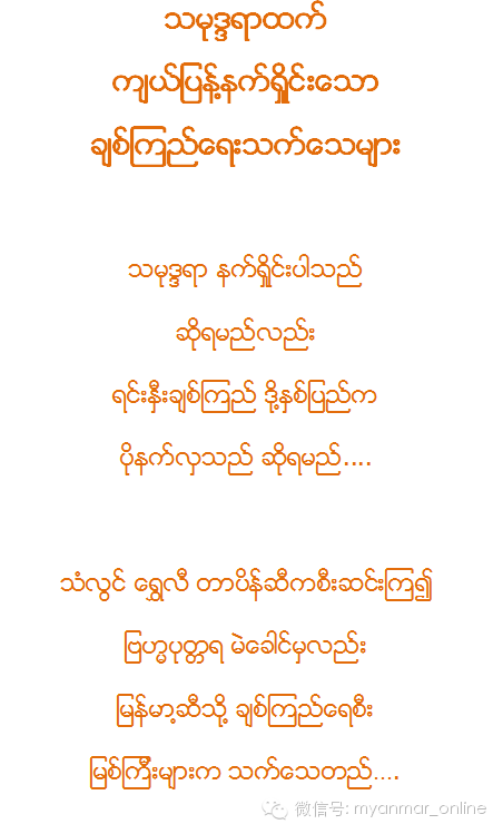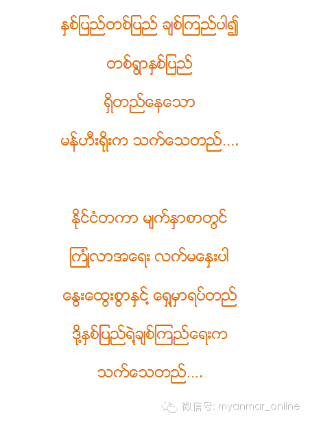仰京诗社,让诗歌伴你左右——缅甸在线特别推出《仰京诗社》栏目,每周四推出一首缅文诗歌供大家交流。这首诗或许是名人大家所作,或许是身边的你我他所作,由CRI缅甸语部的主持人为您朗诵。如果你也对诗歌感兴趣,那就和我们一起来读诗吧,用你的声音来演绎诗歌的美!
