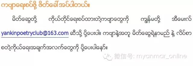 你想成为缅文诗歌界的明日之星么?还等什么,快来投稿吧~~~作品一经选用,将会获得纪念品一份哟~~~