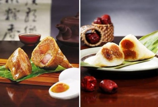 几个钟头之后﹐香喷喷的粽子煮好了﹐妈妈先把热腾腾的粽子取出一些分成多份,叫我们小孩分别拿去送给一些族内老人和亲戚朋友,然后一家人就开始吃粽子。大家围在大圆桌旁﹐大人们自己剥来吃﹐我们小孩因为吃不完一颗﹐就由妈妈分给我们。只见她左手拿着剥了一半还留着一半粽叶的的粽子﹐用牙齿咬着一条线的一端 ﹐右手拉住线的另一端﹐往粽子中间一半的地方绕一圈﹐把线一拉﹐半颗粽子就整整齐齐的落在预先准备好的碟子上。而有粽叶的另一半则放在另一个碟子上﹐然后把粽叶往上一提﹐就完成了分粽手续 ﹐手不黏﹐又不用洗刀﹐真是干净利落。我们小孩通常都会看看自己分得的那一半粽子咸蛋黄的份量﹐如果份量比较大﹐就好像检到便宜一样高兴得很。但如果咸蛋黄的份量比较小﹐就好像吃了大亏﹐但也只好接受。大人们通常沾酱油,麻油,胡椒粉,辣椒酱来吃,而小孩就沾点酱油。我们小孩吃粽子是有顺序的,先从粽子外沿糯米的部分吃起,接下来就吃印度豆的部分,然后就到了中间的猪肉,细嚼慢咬,最后才是整颗粽子的精华咸蛋黄,把它留到最后一口慢慢吃,好让那美味在口里留久一点。吃完肉粽,就吃碱水粽,剥了叶的碱水粽呈金黄色,如琥珀般半透明中间带点红,沾上蜂蜜,软滑香甜,把吃肉粽的饱腻全消弭了。