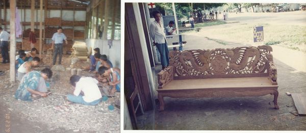 木雕是需要有宽阔的场地,所以我们的木雕工厂设立在孟加拉国洞军区。我们向军部租地自己盖厂房的,买卖部设立在巴罕区瑞贡岱大路。木雕工厂聘请了七位技术高超的师父,十多位助理雕刻师以及五十位左右普通的雕刻工人。所以雕刻规模很大。假如订单多了,还让工人把木材带回家去赶工。木雕是一刀一刀,一锉一锉雕刻出来的。这些工人所有雕刻出来的对象还要经过大师父的修改,加工……。因为每位雕刻师的手法不同,所以雕刻出来的成品要由大师父再修改。