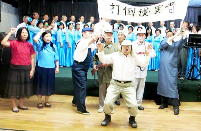 “风在吼,马在叫,黄河在咆哮,黄河在咆哮,…….当我穿着表演服装,站在舞台上,纪念抗日战争暨反法西斯战争胜利70周年,高唱黄河大合唱时,我的脑海把我拉回到50年代初。初中班上来了一位从大陆北大毕业,并参加过五四运动的爱国青年陈老师。他不但教我们语文和历史,并且还教我们唱”黄河大合唱“,“苏武牧羊”等歌曲。从那个时候起,爱国的种子就慢慢地在我心中生根发芽。