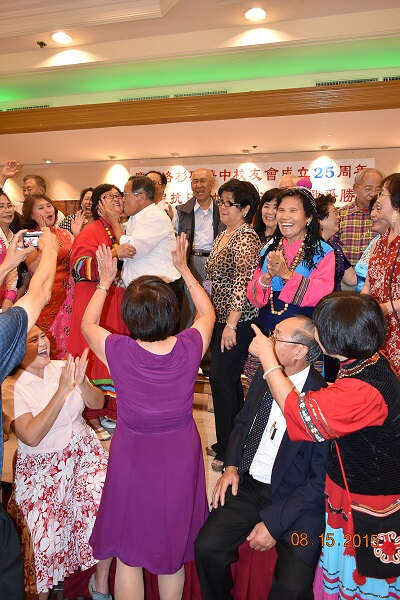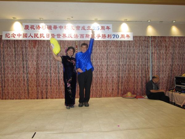十二、所有节目按时演完,主持宣佈晚会成功结束,一来各节目紧凑精彩,二来餐点尚未出完,观众显得特别 "安分守纪" 无人离场,舞台上临时加了些独唱,演员上台合照,突然有人宣佈,今天8月15号是朱雪璋的生日,大家给她唱生日快乐歌,虽然没有生日蛋糕,场面 十分热烈,大家叫陈志平过来站到太太雪璋身边,志平平日少话腼腆,此刻不知哪来虎胆,像喝了烈酒,壮了胆,当众紧抱雪璋热吻不放,把所有人的目光吸引到他们身上,乐得雪璋笑不拢咀,把三个月的辛劳一扫而光,相信她激动得徹夜不眠。巧合的是张秋玲55年前在北京与雪璋一起跳 "织纲姑娘",今晚一起跳"织纲老娘",8月15号也是她的生日,大家的目光转向丘国政,在大家的催促下,他走到秋玲身边热情拥抱、热吻不放、使秋玲心花怒放,一定终生不忘,哈哈!