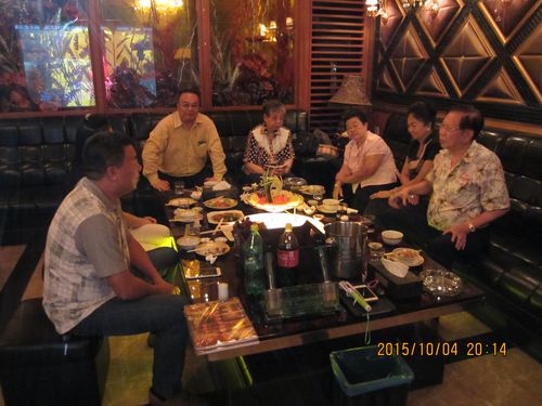 2015-10-8仰光金鸭餐厅北京南友和仰光南友欢乐小聚。2015-10-10南中校友会正主席陈庚铭,名誉主席梁启源召集南友们再次欢聚仰光最大金鸭餐厅,回请北京南友周淑美,张瑞真母子。