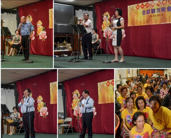 了因参加了二O一五年十月廿四日(星期六)晚六时,在本会会所举行的金秋歌友会。心荡神怡,悦耳迷心骜觉原来“唱歌“并非年轻人的专利,花甲耳顺年华,亦可引吭高歌,情曲绵绵。当晚参加歌友会的会员约近三百,廿五位报名上台献歌的,个个银发朱颜,神彩奕奕,歌声嘹亮,清耳悦心。