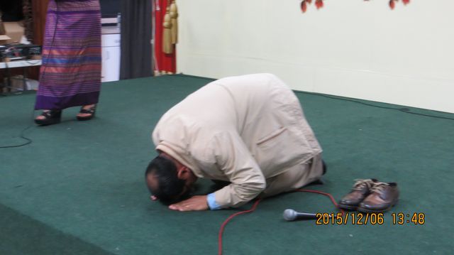 本次敬老联欢活动另一突出亮点是缅甸驻美国洛杉矶总领事宇昂久伞伉俪亲临助兴。总领事应邀上台讲话,首先他面向所有寿星脱下双鞋、曲膝跪地、伏首扑地、全神贯注、三度虔诚敬拜,充分体现了缅甸人民心地善良,从古至今不分国内国外、不分民族阶层尊长敬老护辈的优良传统,场面非常感人。与会全堂观众一时似乎有身处缅甸、非居他乡之感,引起巨大共鸣,暴以热烈掌声。今天总领事心情特别激动,衷心祝愿全体寿星健康长寿。与勒乃一对唱缅语 歌曲,与林碧华合唱华语名歌月亮代表我的心。充分体现了中缅胞波情意万古长青、永不凋谢。缅甸驻洛杉矶总领馆刚开不久,据说筹备过程得到洛杉矶缅甸华侨大力支持,为此总领事多次表示谢意,声言开馆后一定要加倍努力为大家服务,也充分体现了中缅人民互相支持、亲如手足的感情。