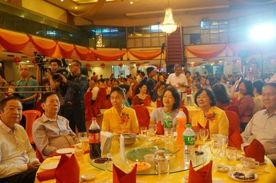 缅华妇女协会于三月八号下午六时假座梅花皇宫大酒家举盛大联欢宴会,热烈庆祝国际三八妇女节暨该会成立七十周年会庆,中国驻缅甸大使馆大使夫人王雪鸿暨大使馆姊妹们、王晓初主任、张鹏秘书、蒋芳秘书及使领馆领导们,出席晚会的还有缅甸女企业家协会代表和缅华社会贤达,以及各侨团代表、缅华妇女协会理监事和会友们,大家欢聚一堂。