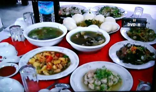 9月18日一早,龚祺昆会长亲自驾车带我到摩谷几个大肉菜市场采购宴席用的食品—鸡、鱼、虾、猪肉、蔬菜瓜果和食油、酱料等调味品。摩谷地处高山密林地带,气候湿润凉爽,出产的蔬菜品种多而新鲜味美。龚会长是当地名人之一,跟市场的商贩很熟,采购时既会挑选又会杀价,商贩都能按他给的价钱卖。我们先到摩谷东南面的旧市场,然后到东北面的大型新市场,很快就买到所需的食品。
