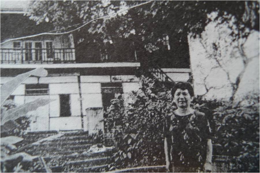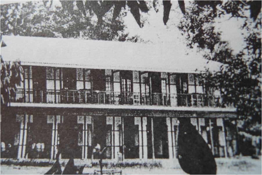 南中高中部中央大楼 楼上右为副校长黄重远老师家室 左为单身老师们卧室 楼下为化学试验室 楼前立者为旭光乙班班长尹利胜同学旧地重游