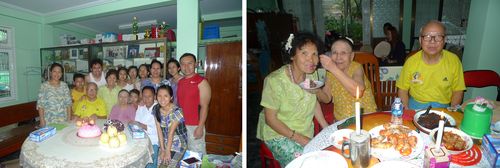 今天正逢姐姐生日、下午三个女儿为她举行简单隆重的生日活动、事先并无告诉她、可乐坏了姐姐,她亲自切蛋糕、亲手喂我们、自始至终洋溢浓情。为了参加婚礼、我们四个亲姐弟欢聚仰光、到时几乎所有侄儿姪女、甥儿甥女、堂侄儿姪女将出席婚礼。弟媳家更是兴师动众、众多亲兄弟姐妹中来了六个、多数来自农村、务农为生、他们举家出动、加之许多堂侄儿姪女、可谓倾巢而来、 一时弟弟家里二十几个人住满三层楼。