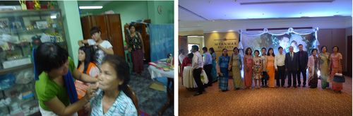 5月21日侄儿伟扬仁与马来胆打昂的婚礼、在仰光著名的竖礼香格里拉大酒楼婚礼大厅举行、由于提前半年多时间预订、当日早、中、午三场婚礼、我们拿到黄金时段9:00-11:00早场。婚礼十分讲究.新娘头一天由家人陪同去酒楼过夜、弟媳和三个女儿婚礼当日天亮前赶到酒楼请高级化装师化装、同时家里来了两个女化装师、抓紧时间给所有女士定发型、 粉装脸。仰光的婚礼有缅式、中式、西式之分、侄儿婚礼採用西式。当日上午有云无雨适宜外出.未至9点三十多个坐位贵宾满堂、个个服装亮丽精神飽满、特别是女士们脸涂胭脂口红、身戴金艮珠宝、个个像明星一样夺艳。整个场面安静吉祥。嘉宾中有双方的亲戚、弟弟过去的上司、亲密的同事、侄儿新加坡、澳洲来的密友等、三哥身着漂亮衣服、在子女陪同下按时现身、姐姐和我一直陪同身边。