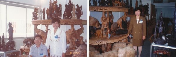 三天的昆明交易会,真想不到我们的雕刻店最热门,每天从早上八点开门到下午四点钟关门为止,三间雕刻店都挤满了人群。店铺里的一件一件雕刻品,透出了一股浓郁的异国情调。一排排的成品是用缅甸特产黑木、柚木、花梨木、合欢木……精雕细刻制作的工艺品及各类家具……。引 来了络绎不绝的中外宾客。这些人群中,有来自世界各地的商人,有从中国各省地来到商人……。有的是来参观木雕展览的,也有的是来买木雕的,也有来订货……。也有一些人是趁机会来偷木雕的。我们三间店仅有的三个人从早上直忙到下午关门,没有一点空闲的时间。中餐也是朋友买来店里给我们轮流着吃,边吃边卖。根本没有多余的时间到外面的卖摊店欣赏那些美食。那个年代,中国刚刚开放,很多公司单位、政府部门来向我们购买整套桌椅,准备摆放在公司。有些房子较大的顾客,也准备买一些摆在客厅当装饰品。有一天下午,门口的警卫带了三个从福建省来的偷木雕的人,他们也很有胆量,都是年轻人,他们每人偷一件木雕。偷去的雕刻品是十七、十八寸左右的狮子和奔马。当他们抬着这些木雕到大门口的时候,大门口的警卫员要查他们买货收据的发票。他们没办法出示证据,经过在各方面的查问,最后,他们三人终于承认是从我们店里偷去的。所以警卫员带了这三个小偷和三件雕刻品还给我们。