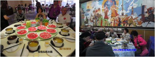 在包头吃的火锅,以牛,羊肉为主,一人一锅,令我们想起了2012年游西藏时在青海湖曾经吃过的一人一锅,以蔬菜为主,较适合我们的口味。