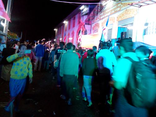 但即使只是供应食物,还是会出现供不应求的现象。头几年,五点开始到八点时还能招待维持客人,后来几年就不行了。因为闻风而来的市民越来越多,甚至有从山下开车上来的大批人群。像今年,五点开始“营业”,还没到五点时我家附近就堆满了无数辆摩托车,社区的主要通道也挤满了许多辆轿车。在这种情况下,很多商家到七点的时候就已无“货”可供应了。好在今年邻居盛邦(Seinban)区也有举办这天堂市场的活动,于是还没吃饱或还吃不到什么东西的顾客又赶去那里了(盛邦区的活动比本区迟一小时,六点钟才开始活动)。