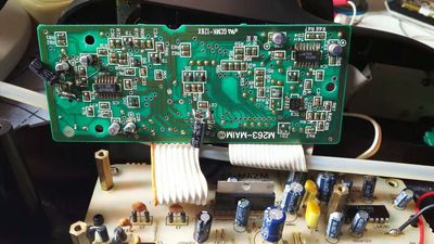 可是好景不长,玩了两三天后,新的毛病出现了!打开电源不响,需要等待三分钟之后,才有微弱的响声出现。吹奏之后一段时间,声音才慢慢恢复。几天之后,开机延迟时间越来越长。二手货是1988年的产品,空置时间太长,可能是电解电容失效所致。于是,我从检查电解电容器入手,更换了几个主要的电容器。故障似乎有所好转。当换掉某个电容器时,声音豁然开朗,本以为这下子修好了,可第二天老毛病再次重现。在没有电路图的情况下,用替代法显然不可取。
