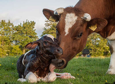 有一个假日中午,我无意中自窗口外望,惊见小空地上母牛站立产子,从小牛露出尖咀,半身垂吊,滑落空地,母牛吞食胎盘,用长舌䑛犊干净小牛身上的粘液,小牛起身站立,主人赶来牵走母牛,前后约半小时,整个过程尽收眼底。动物的生存能力、适应环境程度,比人类倔强许多,小孩生下来后,三翻六坐,七个月后才能爬行,周岁才能学走路。小牛则二十分钟内站立行走。幸亏没有学生路过,否则将会遭到母牛攻击。