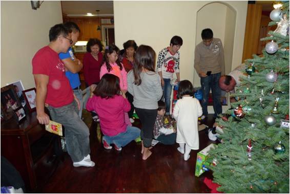 二姪女家正在互赠聖诞礼物