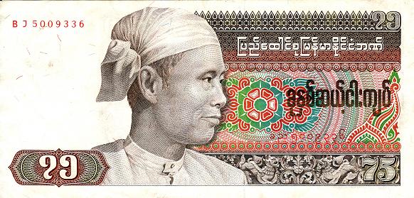 社会在进步,没有大钞是诸多不便,这一次,是75元面值的钞票登场,这是破天荒的决定,有人说是为了纪念某人75岁生日。毕竟不是十进制,使用上有一定不便之处,于是,又发行了25元面值钞票作补助凑成十进制。竟使国民在使用中掌握把75元面值钞票累加成1000元或10000元的快捷心算法,使外国游客惊讶不已,称赞国人数学程度高!之后,又发行了35元面值的钞票,不久后,又发行90元面值及45元面值的钞票,至此,一元至百元钞票,面值与种类之多,洋洋大观,也可算一奇迹。1987年9月,当局又宣布75元面值钞票、35元 面值钞票以及25年面值钞票一起作废,并不再找还任何面值钞票。