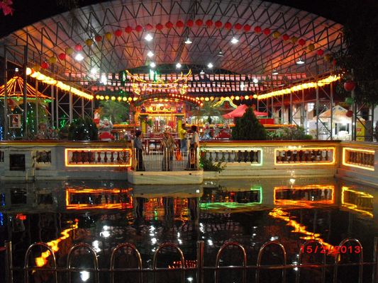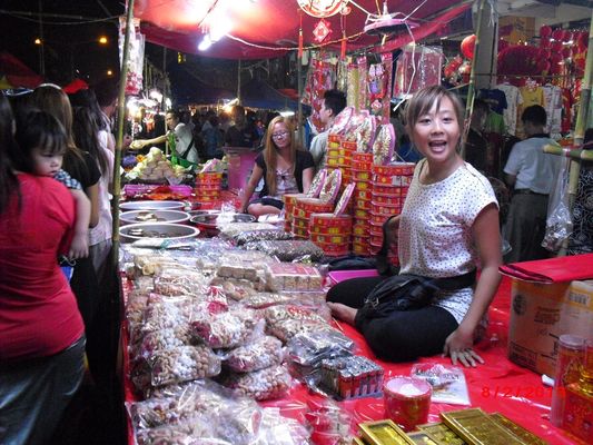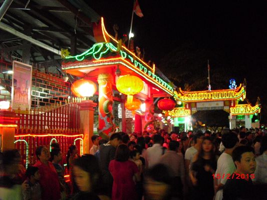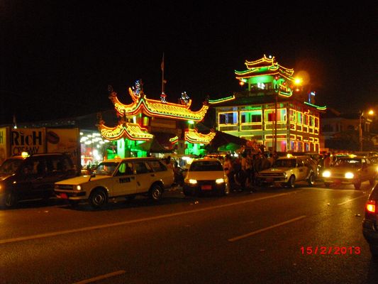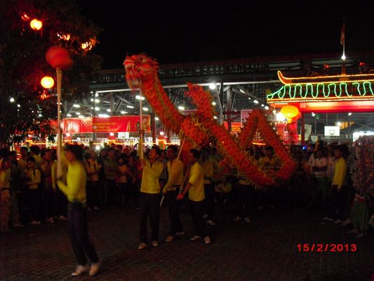 过了年初八,仰光的春节活动大体上告一段落。今年也和往年一样,从腊月二十日左右开始,节日气氛渐浓,映入眼帘,万紫千红点缀华着区大街小巷,卖年糕、卖年货,红红火火,应有尽有。华人过年,气氛就是不一样,给人一种新的气象、一种火热的气象;泼水节的长假,年青人早早就计划出外旅行,更多的则是安排租辆车到郊区彩棚顶泼水欢乐,那毕竟是年青人和孩子的行动,年长的人大都呆在家里看电视、也有几个老者相聚一起,煮一两道家常小菜,谈天论地,说古论今;缅族长者们,大都选择到寺庙里吃斋饭,修身养心,颇令我辈等肃然起敬,但毕竟是"静"的气氛,没有华人春节那种火爆的气氛。印人过节,只是在店铺上、或摊位上多摆了甜品甜糕;或是宰牛杀羊,总是没有那种气派;华人的春节,无论老人小孩、年轻年长,均参与其中,均乐在其中,既神圣、又活泼、既热闹、又气派;四天三夜里,广东大街华区段的路面,整整半边摆满各种小摊,如果从高楼往下望,一片灯光闪烁,绚丽夺目,吆喝声此起彼落,夹着摊贩开放着音响,除夕夜,拥挤在庆福宫观音亭里外,虔诚地等待着开天门,个个手捧长香,静静地看着钟表,吉时到,钟声锣鼓齐鸣,瑞狮队起舞,众信徒争着上前插上第一柱香,与刚才等候吉时降临的耐心,强烈地反差。