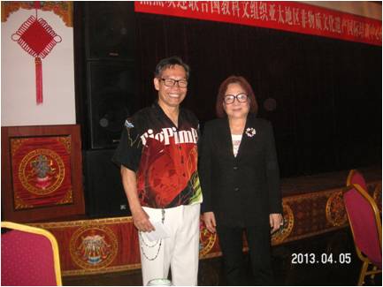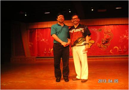 2013.4.5我随“花木兰艺术团”给联合国教科文组织亚太地区非物质文化遗产培训中心杨治主任的演出,是我走上舞台几十年来第一次为联合国官员献艺,提醒自己全力以赴。