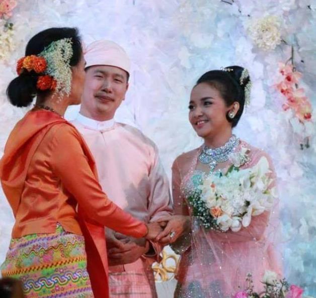 婚礼在仰光的一家高级酒店举行,仪式是缅式,但融合了一些西方元素,比如婚礼开始前是西方管弦乐乐队的现场演奏。几个大屏幕上反复播放着新郎新娘各自的儿时照片以及二人在各种场合的合照,其中有几张是昂山素季与新娘在不同时期的合照,看得出新娘家与昂山素季不寻常的关系。出席婚礼人士的着装都极尽奢华,很少的几位外籍人士也都是晚礼服,长裙及地。除了24日的婚礼外,28日还有一场正式的晚宴招待会,因此当日晚只是邀请嘉宾用了简餐。