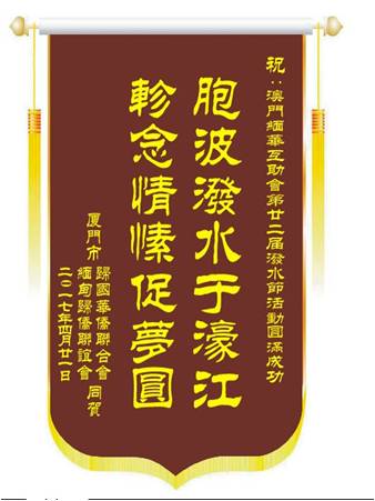 4月21日,澳门泼水节嘉年华活动迎宾晚宴,在“万豪轩”酒楼举行,来自海内外的胞波纷至沓来,台湾地区莅临澳门的缅甸归侨数最多,久违的老同学、师生、朋友一见如故,嘘寒问暖,欢声笑语,均纷纷拿起相机或手机合影留念。为颂祝此次活动的成功举办,笔者代表厦门市侨联及缅联会,向大会赠送“胞波泼水于濠江,轸念情愫促梦圆”的锦旗;澳门缅华互助会回赠了纪念品。迎宾晚宴沉浸在欢乐的海洋之中。