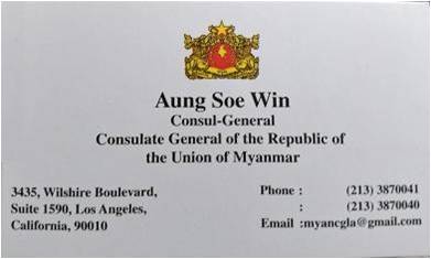 热烈欢迎缅甸驻洛杉矶新任总领事宇昂梭温