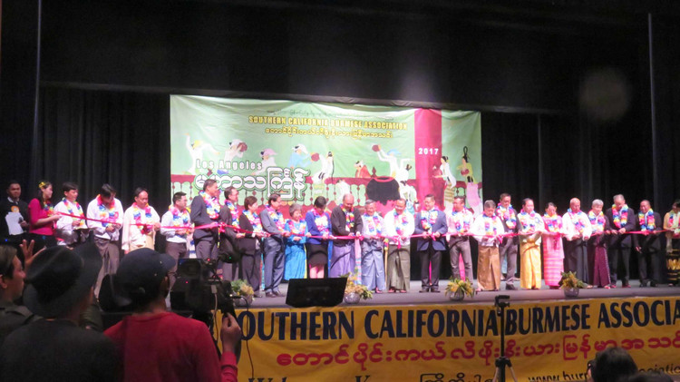 今年更是扩大举办,4月23日(星期天),于华人集居的聖盖博高中 (SAN GABRIEL HIGH SCHOOL)大礼堂隆重举行。上午11:30开始,由南加州缅甸会主席高泰山(HENRY KAO)先生上台致辞,全体来宾以热烈的掌声,欢迎美国国会众议员赵美心博士(DR, JUDY CHU),缅甸驻洛杉矶总领事吴旺觉山先生、夫人及圣盖博民选市长廖钦和先生与市府官员的光临。