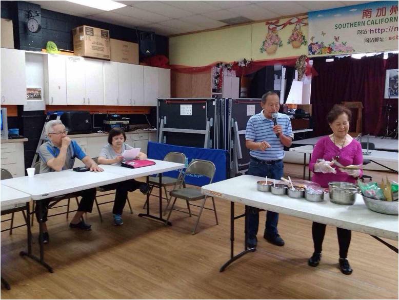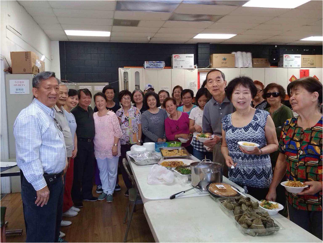 2017-5-28(星期日),是我们南加州缅华会首次一起欢度本年度端午节的美好吉日。接近上午11:00时,在明媚的阳光普照下,会友们三三两两,拥入会堂。此刻,大堂里黄会长太太何玉琴,妇女组长陈瑞爱带领几个姐妹,去粽叶切粽块,分放盘中,加添热心会友们带来的各种甜点水果,排列成行,以待分发,忙个不停。男会友们则搬长桌,排成方形大圈,搬椅子配上桌位,手忙脚乱,不易乐乎。