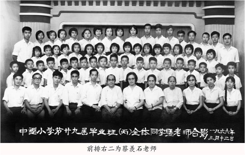 她也教过我们29届丙班,和学生们接下深厚的情缘。1966年3月12日,那是一个中午,骄阳似火,29届三个毕业班的学生正在仰光五十尺路上段的“留真照相馆”集结,准备照毕业照。大家高兴的看到,蔡老师从五十尺路下段急急忙忙赶来,为的是与我们一起照像留念。当时的情景大家都还记忆犹新,历历在目。
