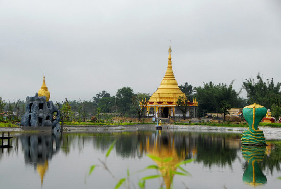 缅甸掸邦北部的芒秀寨子距离云南省瑞丽市区约有十公里,旅客可以在中方的“一寨两国”景点参观,不能越界。想进入缅甸的芒秀寨,就一定要办正式签证。因此,芒秀寨神庙也就没有几个游客到过了。