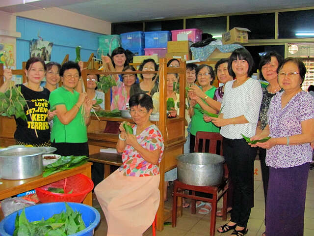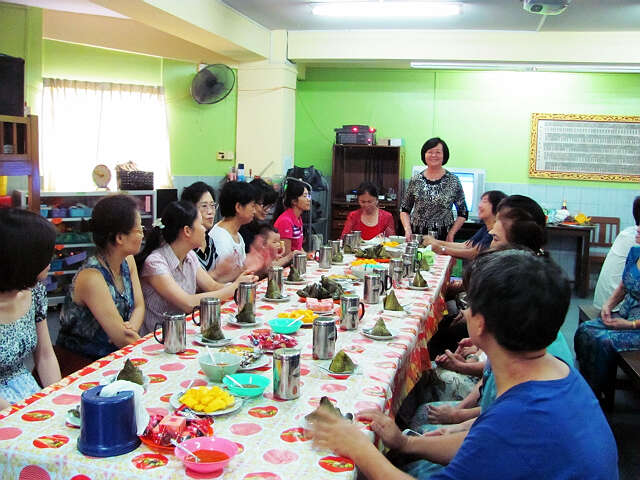 端午已至,粽子飘香。为庆祝中国这一传统节日,使妇协成员们感受到节日的气氛,同时也为让大家过一个温馨的端午节,缅华妇协的阿姨们于6月12日上午在缅华妇协教育中心举行集体包粽子活动. 一时间粽叶舞动,麻绳穿梭。有的阿姨双手将粽子叶卷成漏斗状后,用糯米充实压紧,再用细绳打个结,动作麻利优美,转眼间就包出了一个个可爱的小粽子;也有些阿姨因为没有经验,绳子还没来得及捆,粽子叶就散了,糯米洒了一桌。几分钟后,各种奇形怪状的粽子开始成形了,有三角的,四角的,长方形的,颇有特色。