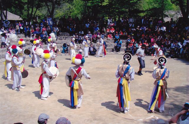 民俗村:-----游客必临之处, 占地颇广, 内有多栋古建筑式样房舍, 有传统的舞艺表演, 数十位俊男美女热情奔放, 手舞足蹈, 配以激昂的节奏, 动人优美的旋律, 赏心悦目, 阿里郎这首经典名曲, 传唱多年, 迄今仍为歌者唱之不辍. 看罢歌舞表演, 再欣赏马术表演, 身手不凡的年青小伙子矫捷地在马背上翻腾跳跃叠罗汉, 值得一看. 穿着艳丽夺目服饰, 打扮得花枝招展, 风情万种, 如花似玉, 貌若天仙, 娇媚青春少女, 摆出千姿百态, 搔首弄姿, 任由游客摄影, 那些男士们绝不放过这秀色可餐的良机, 大演身手摄影, 拍个不亦乐乎!