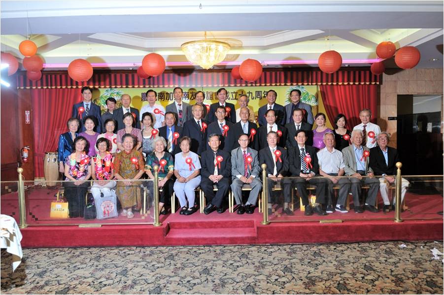 六时许,联欢晚会在雄壮感人的南中校歌歌声中开始了。杨仰彬会长和谢师母,黎天宝、林发财、林碧华等被迎上舞台。许秉正会长首先致词:“我代表南加州南友联谊会,全体干事,向大家表示热烈的欢迎和亲切的问候!特别是杨仰彬会长率领的北加州南友团52人来参加欢聚一堂,增强两会的情感。他说:南中老师们培养的“优秀人才遍布全世界各地,为发扬“中华文化教育, 为社会大众谋求进步,做出了可贵的贡献……”。
