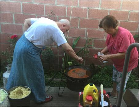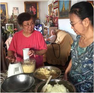 10/12,谢金兰在家开始制作炒米粉,将40杯米(约20磅)分批慢火炒香,摊凉后搅碎。