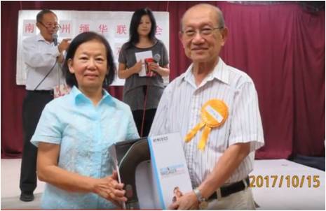 意意温将卖炸豆的钱捐助作幸运红包 粟丽虹捐赠礼物(护颈枕)给耆英