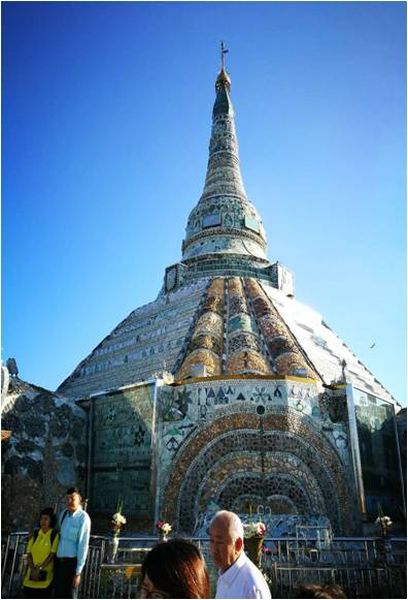 前面两个景点,因是旧地重游,不再费口舌。先说说2015年10月建成的翡翠佛塔。它位于曼德勒新玉石市场前往机场大路的阿马拉布拉,是一座全部用1500吨翡翠打造的佛塔,耗资100亿缅币(折合人民币5千万),价值连城,非常奢华,它刷新了世界纪录,为全球唯一玉石佛塔。