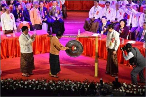 依照缅甸的传统风俗,在曼德勒省长吴佐敏貌敲响金锣别具一格地揭幕