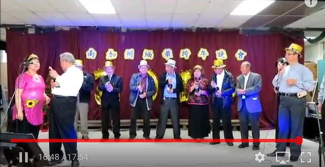 今晚是南加州缅华六团体笫二次联合举办跨年活动,缅华联谊会,华中校友会,南友联谊会,客家会,华夏校友会,华英校友会。首次联办跨年会是在前年。今年巧逢世界缅华同侨曼德勒大会在缅甸曼德勒召开,各团社都组团参加或回乡旅游,大家本以为这将影响跨年晚会的举行。没想到各团队回归之后,在缅华联谊会会长黄国胜先生的倡议下,马上组织了六团体联席会议着手准备开展工作,短短的両周各组工作就绪上路,尽显缅华同侨团体的向心团结的传统精神。