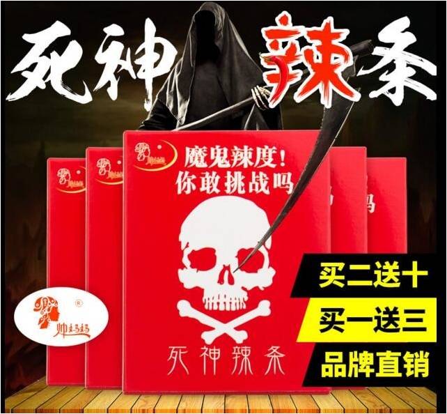 不信请看!他她们对 “卡诺纳死神辣椒、死神辣条”特别爱不释手,常指着外包装“骷髅头”图案,打哈哈说“死神”辣度是普通辣椒的220万度——世界最辣!会辣死所有病毒细菌癌细胞与牛鬼蛇神!人人怕,我们胆大包天,一点都不怕!