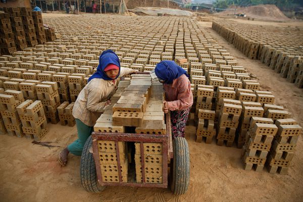 在仰光郊区边缘村镇有很多砖瓦制造厂。在工头的监督下,体力劳动者仅穿自家旧衣裤或围裙就进厂制造砖瓦、爬上爬下堆积、搬运,他她们没有劳保衣裤、劳保手套、劳保鞋,更不见爬梯、工具等——每天徒手工作8小时,工资缅甸币2000-3000元(1美元多),剩余价值都转化为国家收入与仰光城市现代化基金。