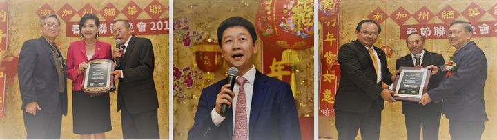 金鸡舞瑞犬唱,戊戍新春旺旺旺,台上贺语频频,台下掌声连绵,红红火火,洋洋喜气氛围里,赵美心议员,总领宇旺苏温,祖籍亲人汤领事……等贵宾对南加州缅华族群,全美华侨华人,世界华人致以亲切的问候和新春节日的祝贺。