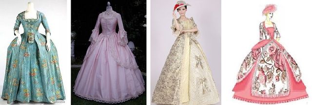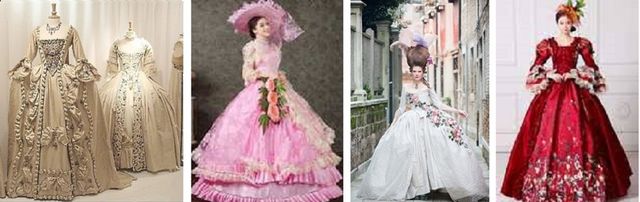 在女仆的协助下,小心翼翼的终于把她穿上了。那时还未发明拉链,女仆耐心的把她衣服后面那二三十个小小的钮扣一一扣上。头发早已弄好,是用大铁钳在火炭上烧热,然后把头发卷成一圈圈的波浪,配上许多小巧的蝴蝶结。脸部也经过精细的化妆,手指甲和脚趾甲在几天前已用胭脂花汁染成桃红色。