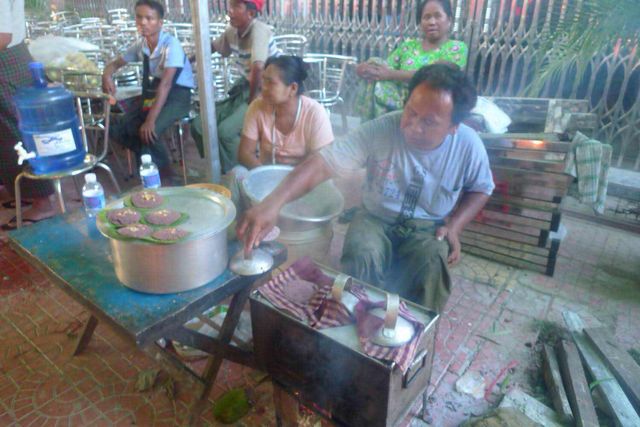 特别一提的是,现场制作,殷情接待的几十位中,青年男女全是当地缅甸朋友。全体参与者视此次缅华活动当着本民族活动,高兴不已,热情参与。其中一对中年夫妇,男主女助,现场烘焙黑糯米粉烤饼(莫毕什勒),火碳烘热了他的身体,他一边操作,一边擦汗,令作者十分感动。充分体现,中缅人民唇齿相依,感情融洽,彼此无间,共庆共乐,其意义非凡,绝对是历届从无的又一个创举。