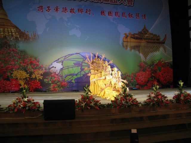整齐划一的“千手千眼观音”舞蹈与中国春晚如出一辙;陈毅元帅“赠缅甸友人”优美旋律的舞蹈,让胞波们又回到了“共饮一江水”中缅友好的历史时空;中国、缅甸歌曲、舞蹈贯穿节目表演始终,博得了与会者们经久不息的热烈掌声。尤其是刚荣获缅甸总统吴登盛授予的“德才兼备光辉楷模”勋章的粟秀玉老师登台亮喉,把整台演出推向了高潮,谁会相信她已是一位耄耋之老人。