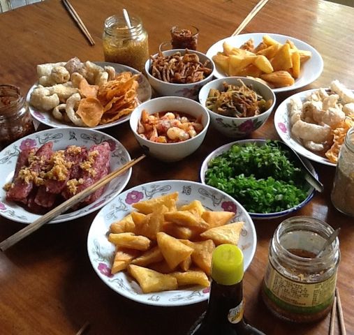 乘搭直通夜快车,次日一早到达腊戍。回到家里,全家弟妹侄儿女们都已经等在门口,桌上早已摆了热腾腾的掸米线、炸碗豆粉、炸猪皮、炸豆片、酸肉饭、辣腌菜、辣荞头……行李也顾不得整理,狼吞虎咽的饱餐了一顿,才坐下来和家人话家常……