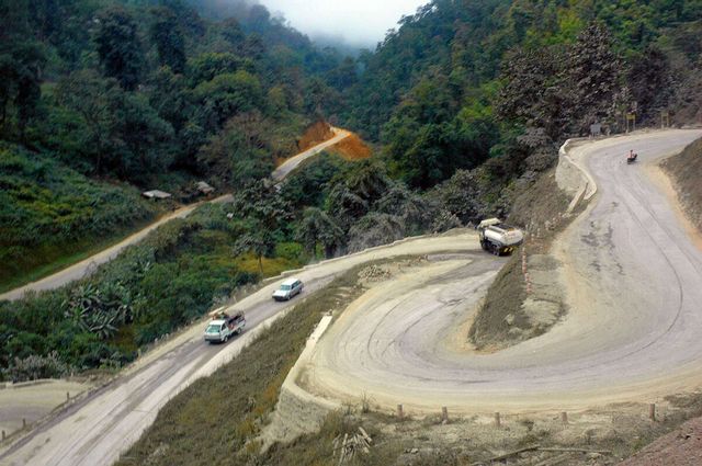 九月十四日,带着亲人们送的竹筒糕、鸡枞,葛粉、茶叶,还有侄媳妇亲手做的粽子,依依不舍的踏上归途。下午四点从腊戍出发,不久下起了小雨,七点钟到达皎脉站停三十分钟,各人吃掸米线晚餐,买酥饼,奶酥等土产。再出发过了脑秉,八点左右开始下山,进入“谷踢"盘山公路,九转十八弯。天雨路滑,道路泥泞,不久在一个下转三十度左右的“U”型急转弯处,我们车前面的第二辆大巴,不知发生了什么状况,在急弯前停住不动。只见有五、六个工作人员打着手电筒,在该车的周围跑来跑去,帮忙解决问题。折腾了半个多钟头,车终于开始移动,在工作人员的指挥下艰难的转过了这个急弯。不久我车开始转入该弯,在细雨中滑不溜秋的泥泞路上,看着工作人员在车前打着电筒指挥,一手拿着三角木一面喊口令“往左,退!往右,进!” 驾车师傅一边听从号令,一边小心翼翼的操纵,庞大的车身,在只距悬崖一英尺左右的路边,如此进进退退几次之后,才惊险的转过了这个弯。我们在车上看得胆颤心惊,手心捏汗,直到过了弯,前面的路比较畅顺,才放下心来。